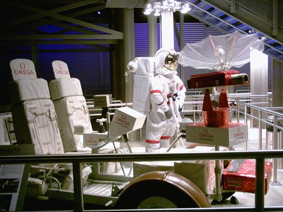 die auch die Uhren die die Astronauten auf dem Mond trugen geliefert hat, entliehen wurde. Im Hintergrund der Nachbau des "Mondanzugs". Beide Nachbauten sind im Maßstab 1:1 Foto: © 2004 NAFS |