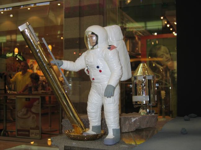 Nun noch ein paar Worte zur Beteiligung des NAFS. Insgesamt wurden 8 Exponate gestellt. Neben 2 verschiedenen Sorten Space Food aus dem APOLLO-Programm und einer Replik des APOLLO ICG waren folgende Modelle dabei: SATURN V im Maßstab 1/96, APOLLO CSM im Maßsstab 1/48, APOLLO-Astronaut on the Moon im Maßstab 1/6 und ein Diorama der ersten bemannten Mondlandung ebenfalls im Maßstab 1/48. Ausserdem eine Schnittdarstellung der SATURN V im Maßstab 1/65. Leider konnten auf Grund der Entfernung nicht von allen Exponaten Bilder "im Einsatz" gemacht werden. Daher hier zusätzlich einige Archivbilder.