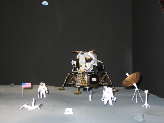 Im Vordergrund rechts ( leider sehr undeutlich ) das Diorama der ersten bemannten Mondlandung im Maßstab 1/48 |
