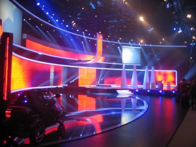 riesige Bühne ausgestattet mit jeder Menge HighTech - bereit für die Show. |