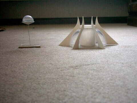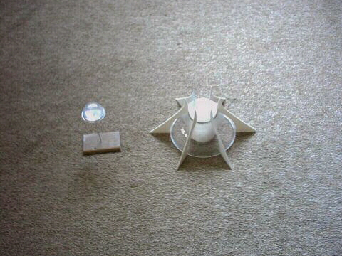 Das wichtigste Material für den Bau: Polystyrol-Platten (1,5 + 2,0 mm dick) eine hohle Polystyrol-Halbkugel und ein PS-Rohr von ca. 40 mm Durchmesser.