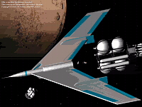 Für den Flug zum Mars wurde ebenfalls ein Konzept entwickelt. Ähnlich wie beim Moon-Ship sollte auch hier nahe der Raumstation ein großes Marsschiff im Orbit gebaut werden. Seine Form erinnert an ein riesiges Segelflugzeug mit Raketenantrieb, was auch beabsichtigt war, denn schon damals war bekannt, das der Mars eine dünne Atmosphäre besitzt. Also legte man das Schiff so aus, daß es dort wie ein Segelflugzeug landen konnte. Das Schiff war als zweistufiges Fahrzeug konzipiert. Für den Rückstart wurde die Rückkehrstufe vom flugzeugähnlichen Teil getrennt und aufgerichtet, so daß sie wie eine "normale" Rakete starten und den Rückweg zur Erde antreten konnte. Wie beim Lunar-Lander sollte die Rückkehrstufe im Erdorbit nahe der Raumstation geparkt werde. Die Rückkehr der Mars-Crew zur Erde erfolgte mit dem, von der 3 Stage Ferry Rocket gestarteten, Raumgleiter. |