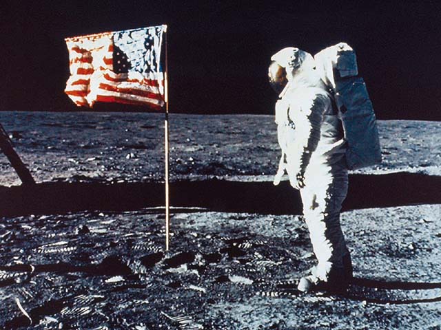 Bild links: 21. Juli 1969 MEZ Geschaft ! Der erste Mensch auf dem Mond vor Ablauf des Jahrzehnts. |