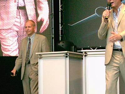 Ein weiteres Raumfahrt-Highlight waren natürlich die Auftritte von Dr. Hans Schlegel, ESA Astronaut und Teilnehmer der D2-Mission. Insgesamt trat Herr Schlegel drei mal vor das Publikum um über seine eigenen Erfahrungen als Astronaut zu berichten sowie aktuelle Informationen zu geben. Auch war es jedes mal möglich Fragen an Herrn Schlegel zu richten. Diese Möglichkeit wurde aber leider sehr spärlich genutzt. Alles in Allem hätte ich Herrn Schlegel ein größeres Publikum gewünscht.Mein persönliches Highlight habe ich nach dem Auftritt von Herrn Schlegel um ca. 14:00 Uhr gehabt. Ich machte mich auf den Weg hinter die Bühne um Herrn Schlegel um ein Autogramm zu bitten und hatte dann die wohl seltene Gelegenheit mit Herrn Schlegel 10 Minuten ein lockeres persönliches Gespräch zu führen. Man möge es mir verzeihen, aber dieses Gespräch alleine war für mich die Reise nach Braunschweig wert.