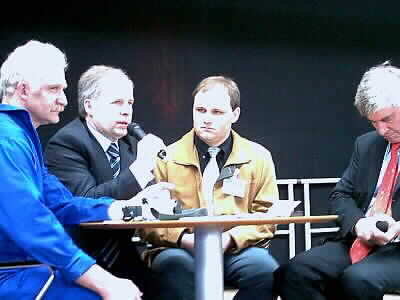 Anders als bei Auftritten bei Veranstaltungen wie z.B. dem Tag der Raumfahrt des DLR mischten sich Dr. Merbold und Herr Soloviev nach den 3-er Gesprächen auf der Bühne "unter's Volk". Hier wurden dann die Fragen gestellt und beantwortet, die man sich nicht traute "öffentlich" während der Podiumsgespräche zu stellen. Mit Engelsgeduld beantworteten die Herren diese Fragen und gaben Autogramme.