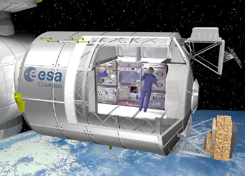 | Oben: Der europäische Beitrag zur ISS, das COLUMBUS-Modul. Foto: © ESA / NASA |
