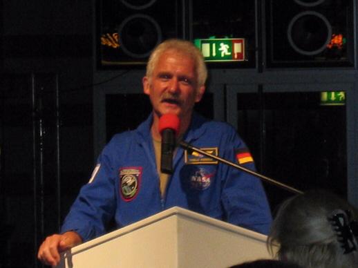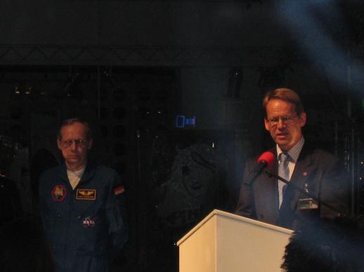 Oben: Landrat Wilhelm Krömer überbringt die besten Wünsche des Kreises Unten: Tasillo Römisch vom Space Service International hält eine kurze Eröffnungsansprache |